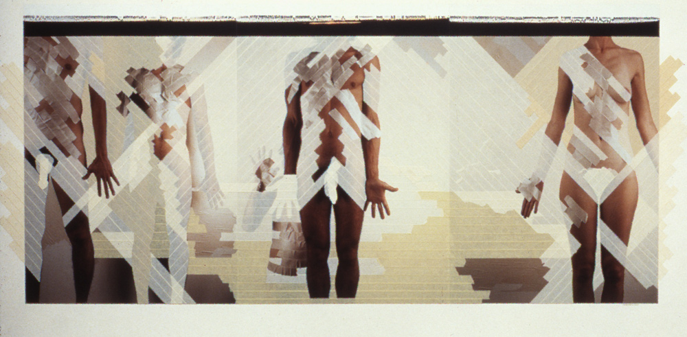 three 20X24 Polaroid Polacolor ER Land Prints with selectively applied masking tape, archival enhancing medium