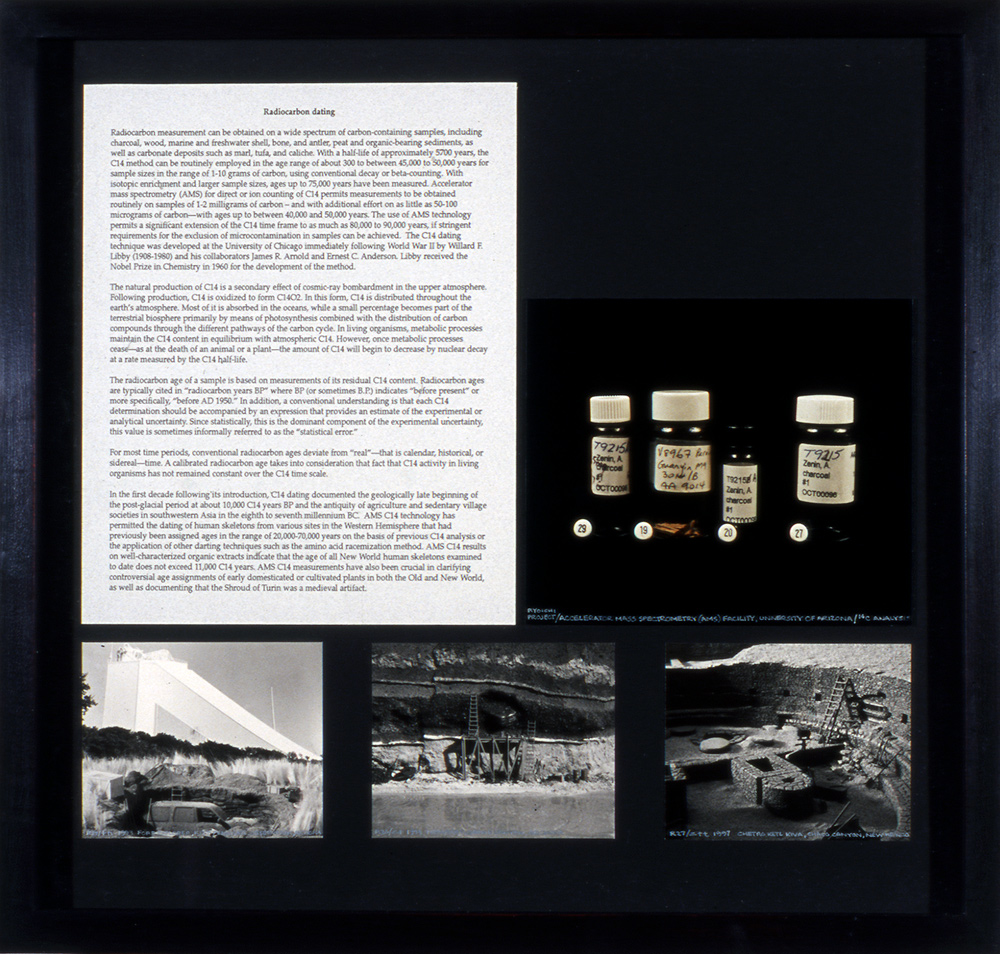 Radiocarbon dating, 2000, 18" X 16" Gelatin silver prints, Chromogenic print (Ilfocolor), text on black museum board